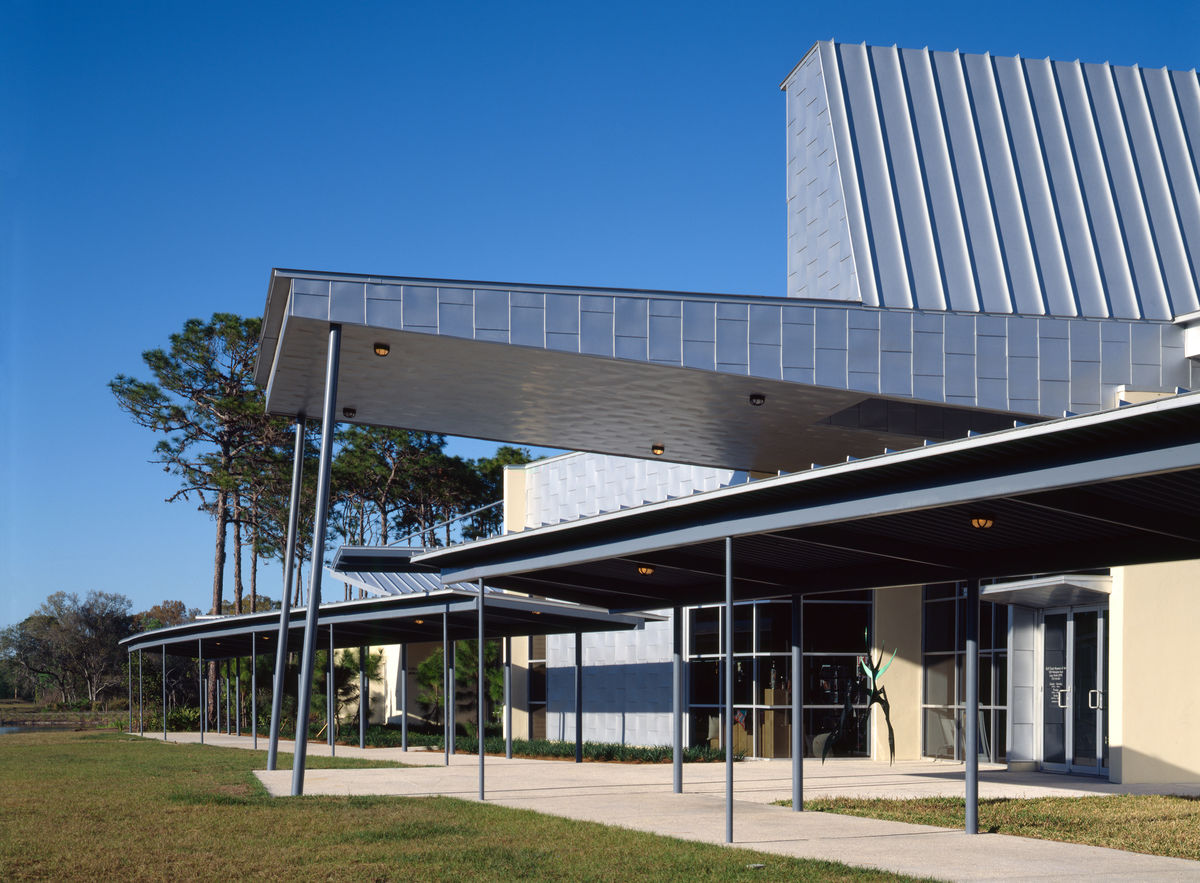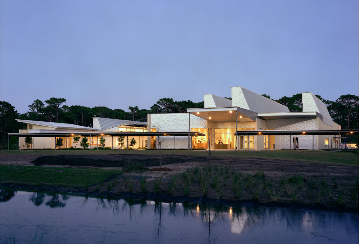 The Gulf Coast Museum of Art is a 45,000 sf facility dedicated to collecting, exhibiting, and teaching the visual arts. The project includes exhibition galleries, studios for instruction, an outdoor sculpture garden, research library, museum store, auditorium, and a master artist residence. The buildings are connected by a lightweight, steel colonnade that runs parallel to a waterway, offering views of the nearby Florida Botanical Gardens. The buildings are spaced to form intimate gardens, allowing a simple weaving of landscape and architecture while integrating the botanical gardens and museum. As visitors move through the gardens they are encouraged to observe and interact with classes and artists in the studios.