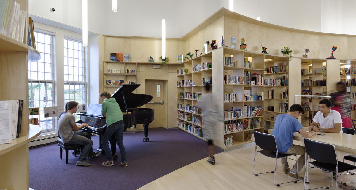 MTA was initially engaged to work on an in-depth master planning project for the school’s 100,000 sf of buildings on their two campuses in Cambridge and Arlington. After a thoughtful process involving faculty and staff, MTA’s master plan identified over 50 interventions to achieve the desires of the community, including a black box theatre, a new building for an école maturnelle, and a new library space. After the master planning process was completed MTA was subsequently hired to complete a series of design and construction projects. These projects were completed largely over the summer months when the school is not in session. A new library that incorporated an unused octagon space at the heart of the school, a new upper school lounge and adjacent college counseling area, a renovated entry lobby, and a renovated series of middle school classrooms are some of the projects that have been undertaken. A renovated faculty lounge was completed in the summer of 2015.