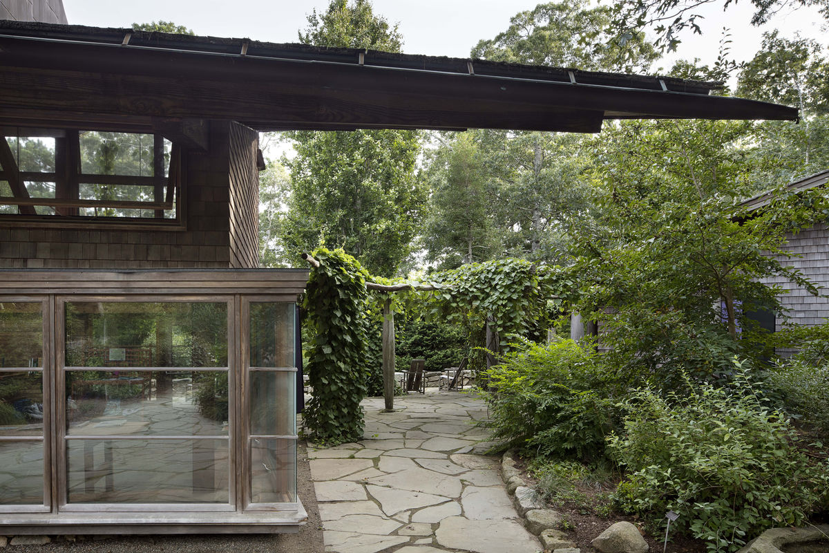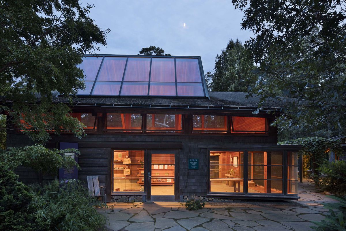 The new visitor center nestles into the existing woodlands of the Polly Hill Arboretum on Martha’s Vineyard. The buildings were designed as simple shed forms which heighten the visitor’s relationship to the site. Outdoors, the complex layering of trellis, heavy timber frame, and perforated planes of the roofs mediate the natural light as do the trees above them.