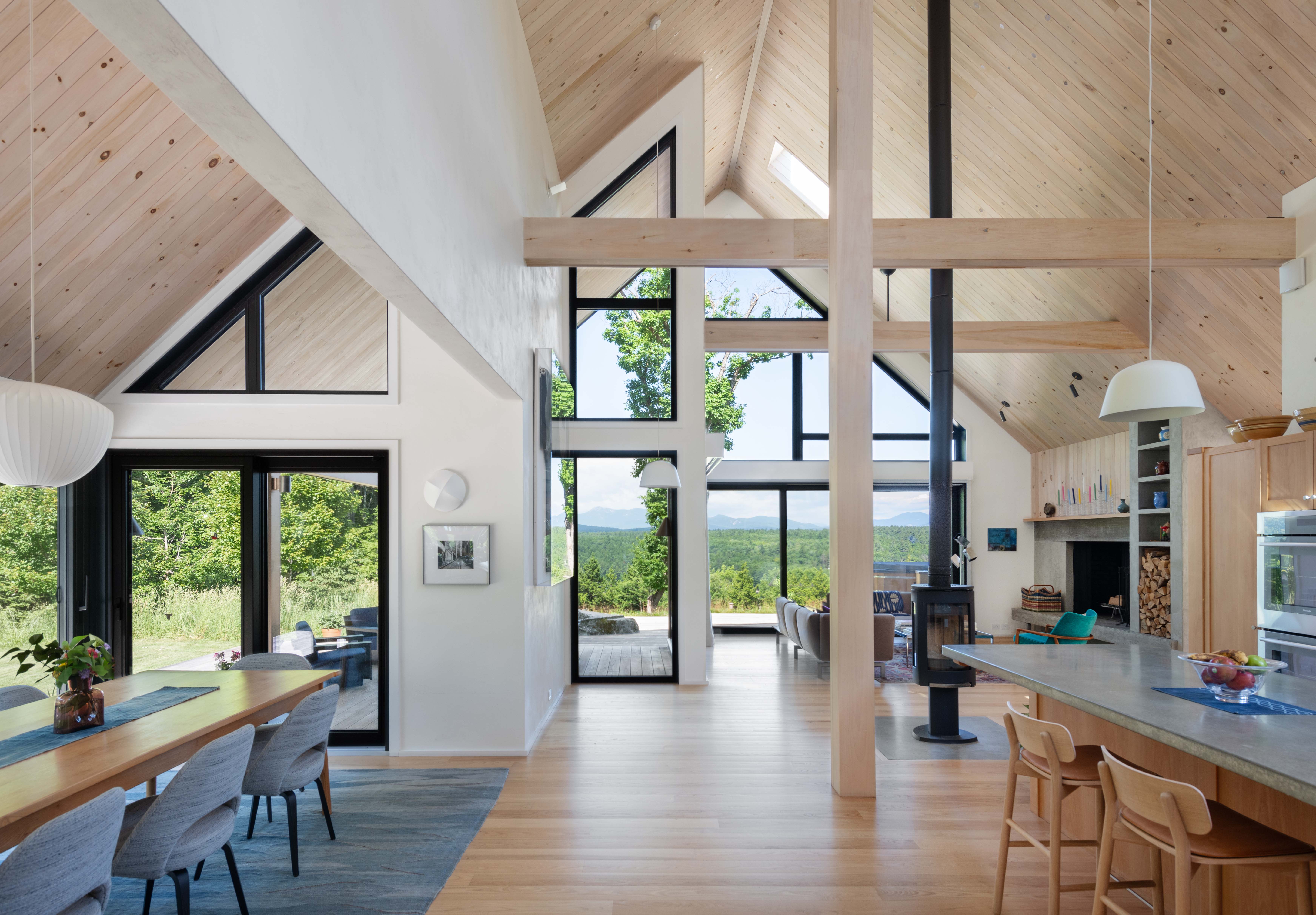 This active family, deeply engaged with the outdoors, envisioned a forever home in the mountains of New Hampshire that could evolve with their lives and anticipate every stage - children leaving for college, aging parents requiring care, the flexibility for remote work, extended family and friends gathering for holidays or long visits. Equally important was creating a house rooted in its local context and intrinsically connected to the surrounding landscape.