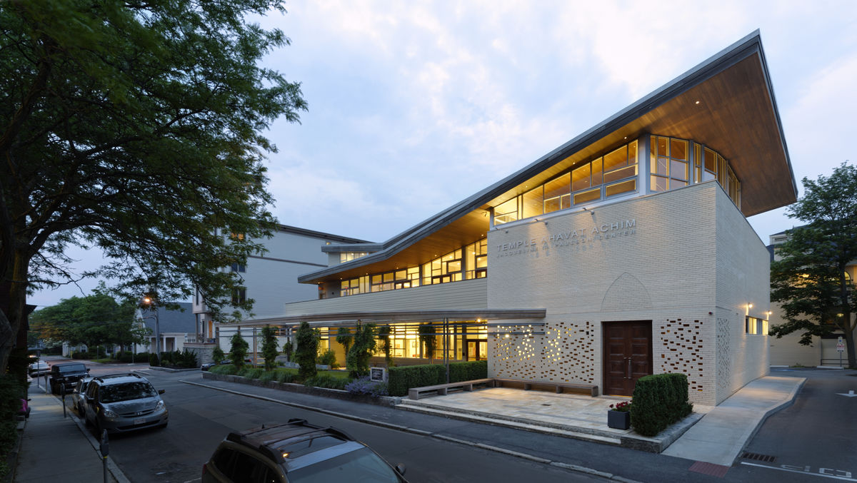 The Temple Ahavat Achim’s former building, tragically destroyed by fire, had been built originally as a church. Its north-facing sanctuary, large enough to hold the great influx of worshipers on High Holy Days, was lacking in intimacy for the much smaller weekly gatherings, making it a rarely utilized space that was expensive to heat and cool. MTA was asked to address these challenges and to create a spiritual building that was also open to the community of Gloucester.