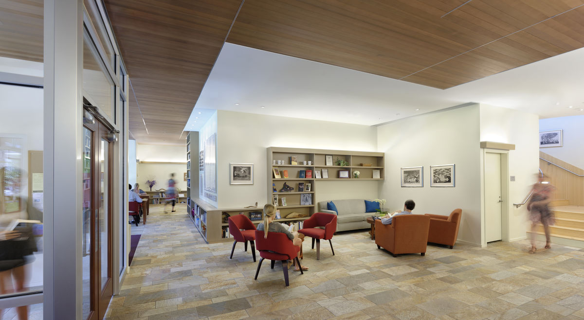 A new programmatic strategy reduces the overall footprint, while also creating meaningful relationships with the city and re-orienting the worship spaces toward Jerusalem in the east. The length of the building is oriented to the south to take advantage of passive solar heating in the winter. Deep overhangs prevent solar heat gain in the summer months while allowing for year-round day-lighting. The southern expanse of glass along Middle Street creates a welcoming relationship between the social spaces on the ground floor and the city.